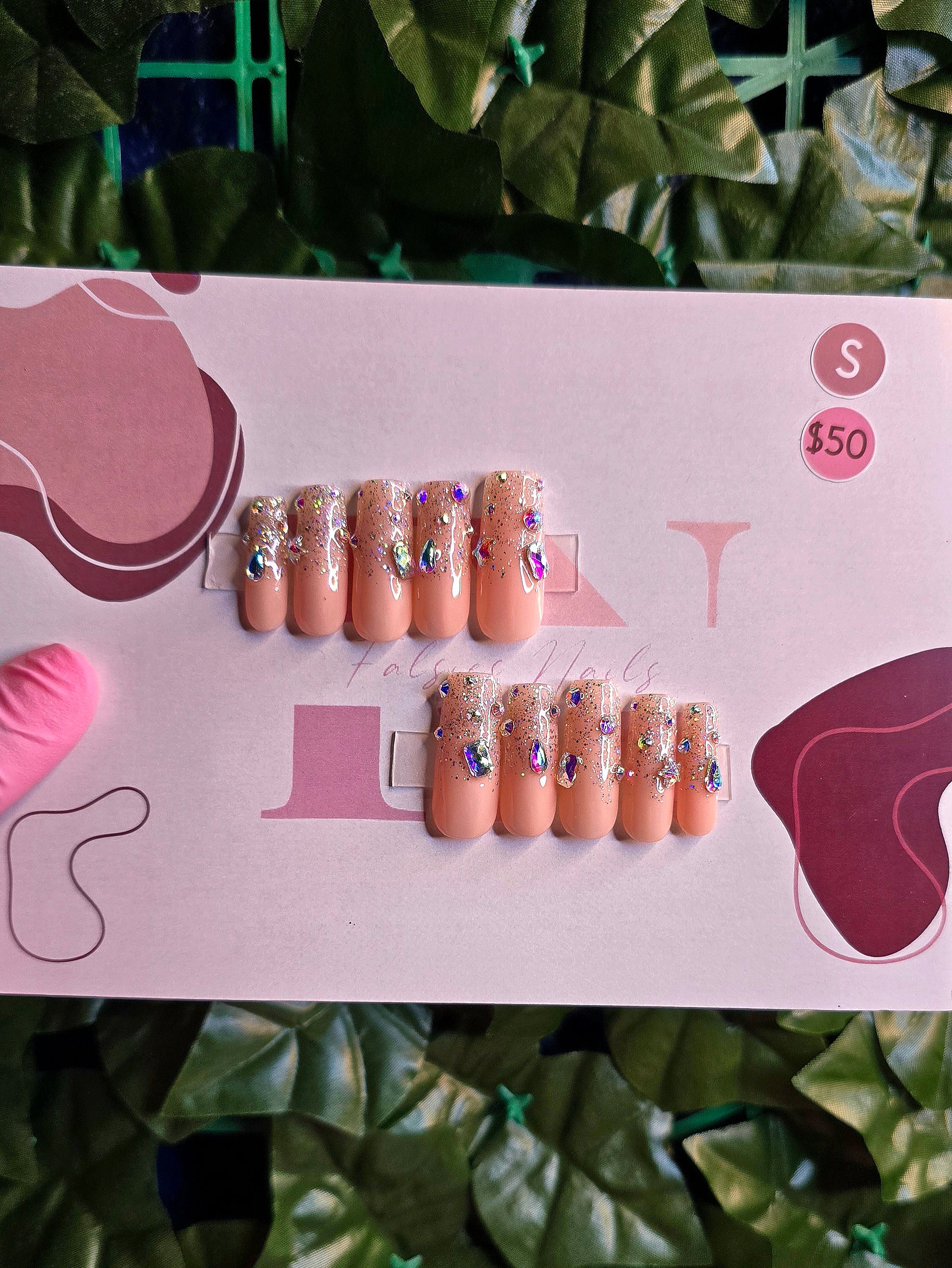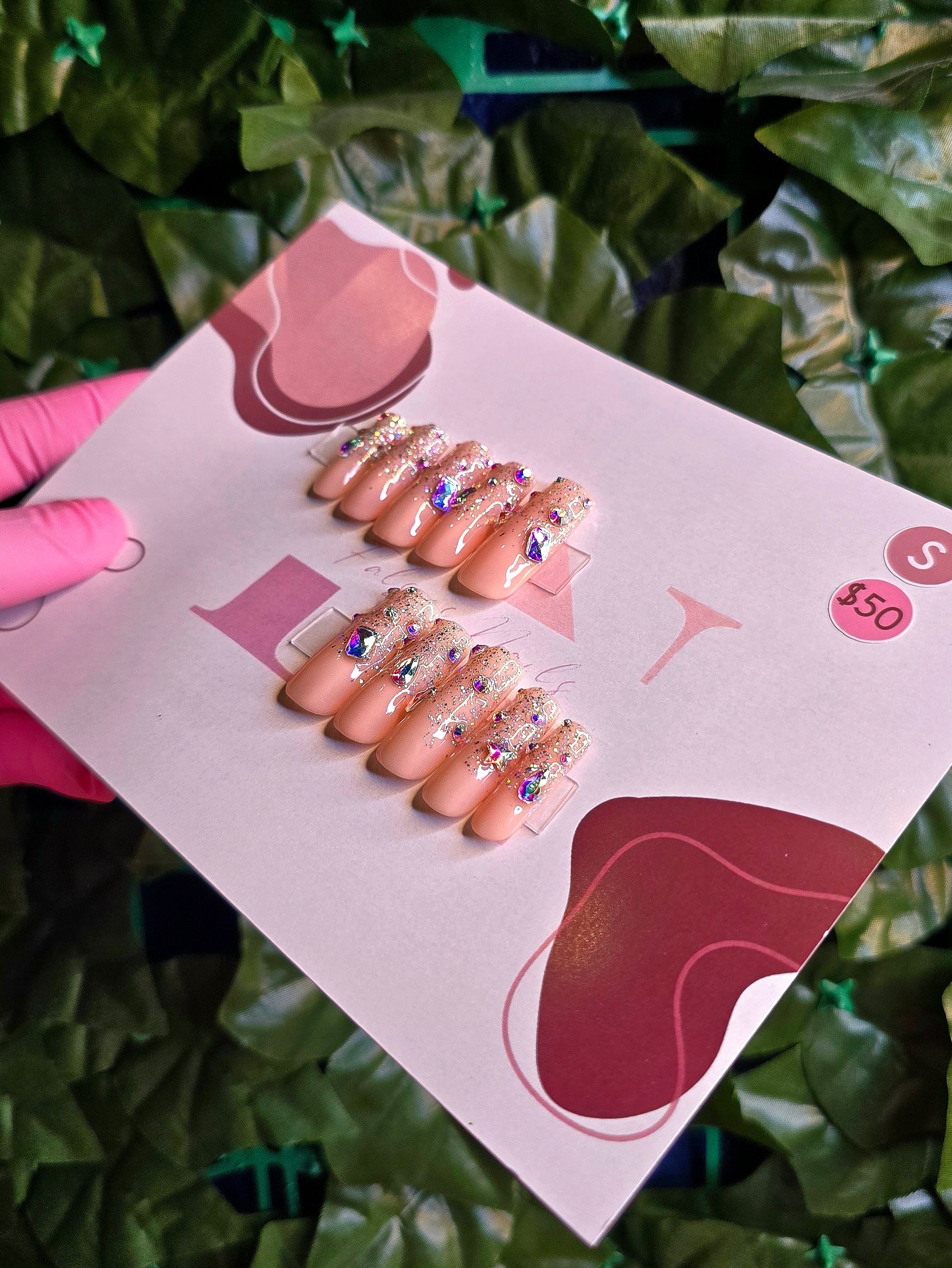 Step into the spotlight. Diamond Drip is a full-scale glam activation — a rich nude base topped with high-shine crystals, glitter gradients, and statement sparkle that instantly elevates any fit. This set is engineered for the girl who leads with impact and refuses to blend in.