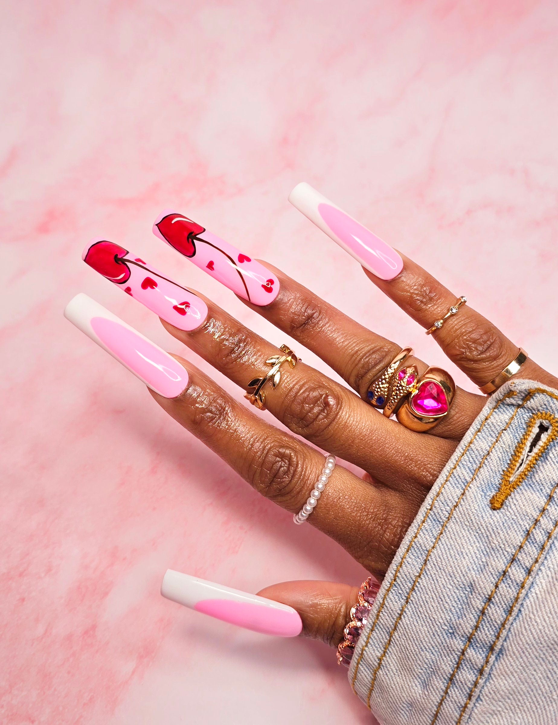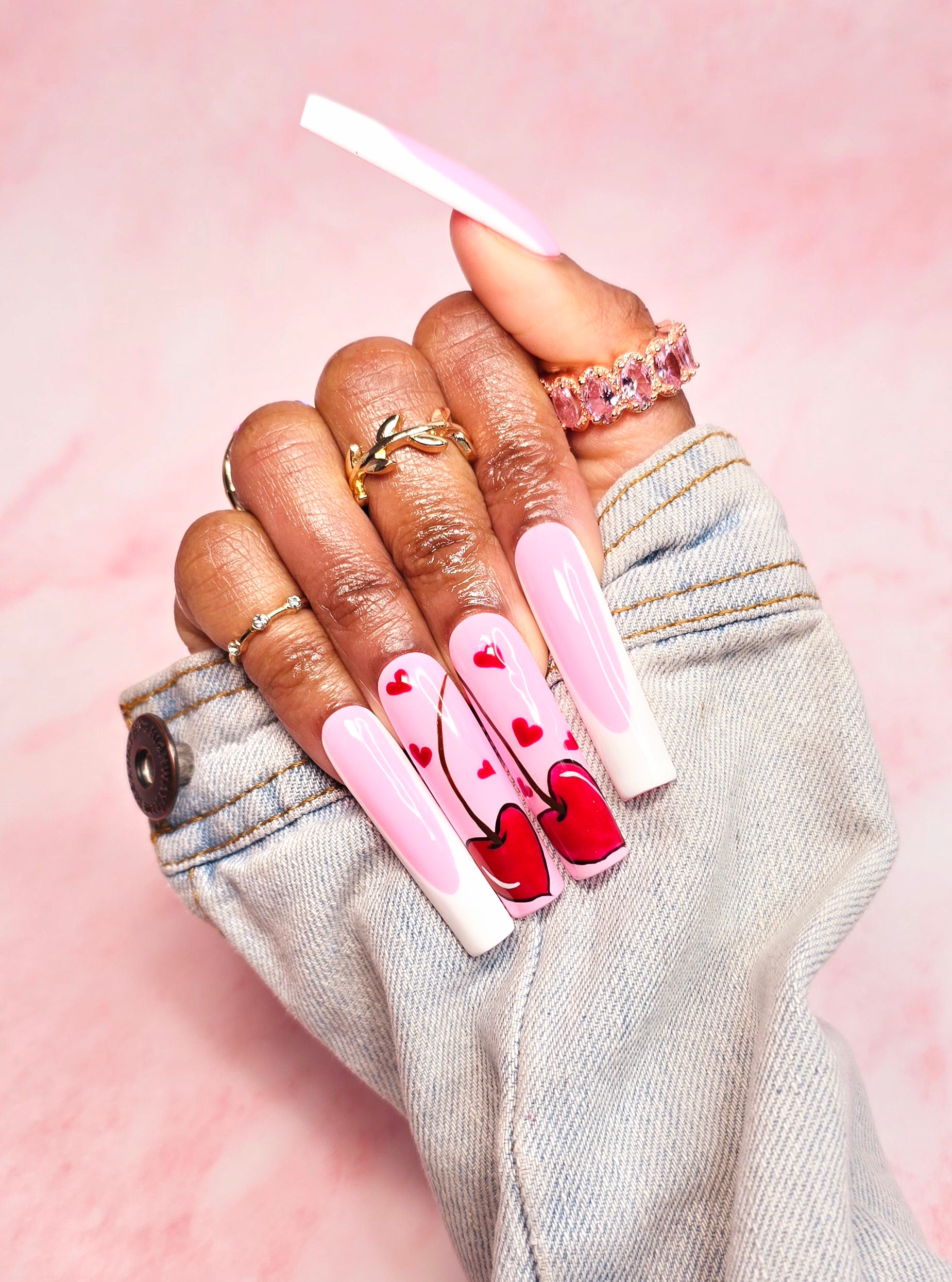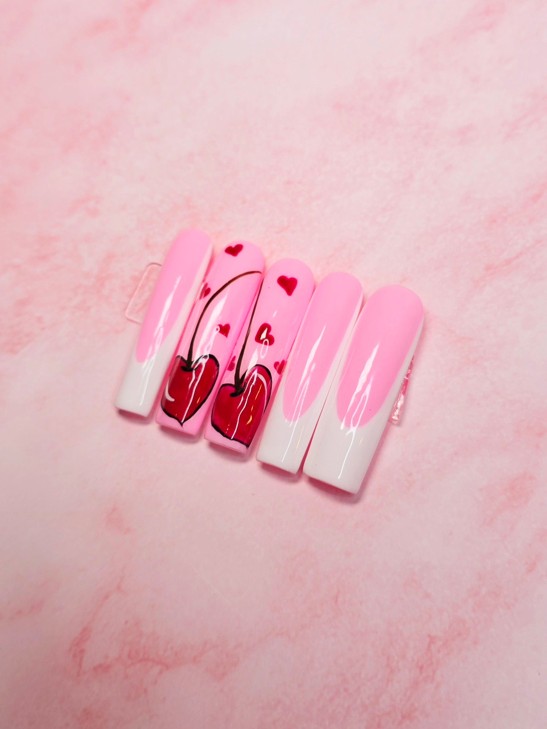 Get into the Valentine's Day spirit with these hand painted, cherry themed frenchies.